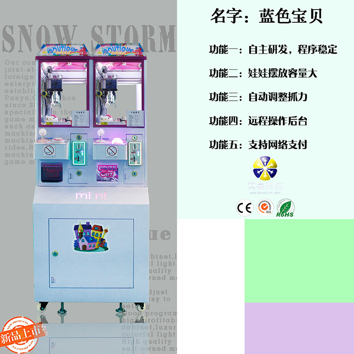 雪暴娃娃机,自主研发程序,采用国内知名品牌的主板及质量最好的天车,程序稳定,